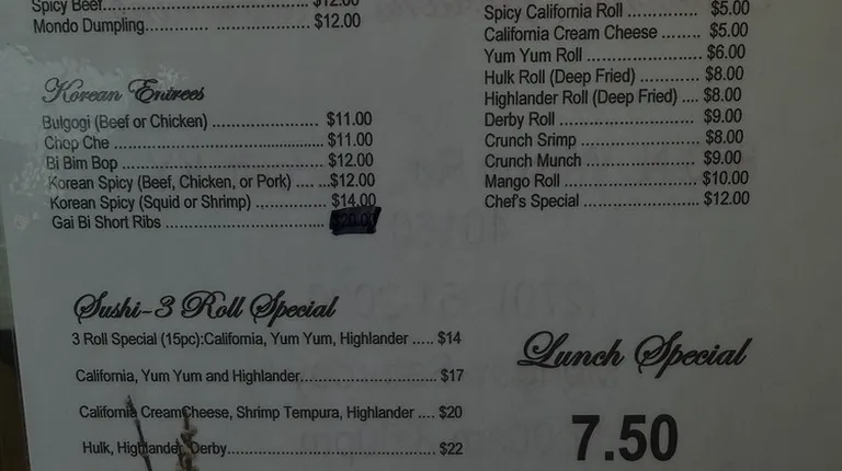 Good quality Korean food, fairly priced for the quality. Take out only, and can call ahead for pickup