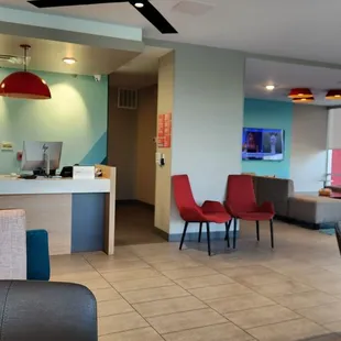 First impression: Clean modern and friendly! Checkin process was smooth. Checked in online and got to our room quickly. Our King room had all the things we needed and lots of little cubby holes to stash things. No actual closet only hooks to hang things and hanger out in the open. Would not be a good option for me if I was traveling for business but good for quick overnight. Water pressure was a little less than desirableGrab and go breakfast with hard boiled eggs, bagels, Nutrigrain bars, instant oatmeal, and other packaged items. Coffee and good tea selection as well. Bonus that they have a Tesla wall charger there with two plugs at no extra charge. Also a J1772 dual station in the parking lot. A nice budget option in a newer property. The facility was very clean and the rooms were clean too.