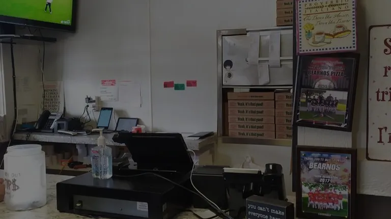 Bearno's is probably my favorite local pizza place. The pizza is so good I can eat it cold. The room is quite frankly nothing particularly impressive, but it gets the job done. This place isn't about ambience. This is a place you go to for great pizza, and they've got that. The price point is a little on the high side, but it's worth it.