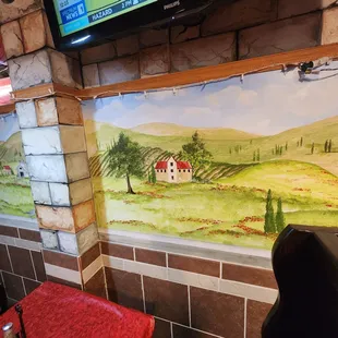 My parents and I stopped in for lunch as it was recommended by a friend. And it was pretty busy for a Thursday afternoon. What a cute place! I loved all the handpainted murals on the walls beside the booths. We received garlic bread, with marinara sauce for dipping, not long after taking out seats. It was tasty but lacked the garlic flavor I expected. I ordered a lunch size calzone with a side salad. The salad was fresh but the calzone was my favorite. The bread was light and airy and stuffed with sausage, mushrooms, onions and cheese. I thought the marinara sauce was delicious! Perfect for calzone dipping. I would definitely eat her again when in town!