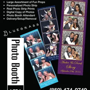 Bluegrass Photo Booth did a great job at our wedding reception last weekend! So many people raved about how fun it was, and when my new husband and I tried it out, the people working the booth got tons of fun pictures of us and made a full scrapbook with those as well as all the other photos our guests took throughout the night. It's such a cool memory we have, and our guests got to sign the scrapbook by their photos. We got an adorable key chain with us (the bride and groom) on it as well! I would highly recommend adding this to your wedding reception!