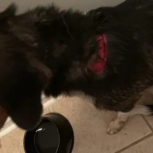 Rosie, being a good patient dog.