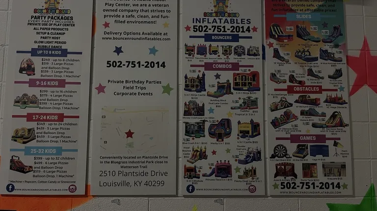 One of the better inflatable places in Louisville. Newer equipment, friendly staff, clean place. Deducted two stars because they switch to all black light sometimes apparently and don't give any warning, which can really frighten a small child who's in the middle of an inflatable that's afraid of the dark. Please give notice before you do that! We had to leave after because my child was scared and upset.