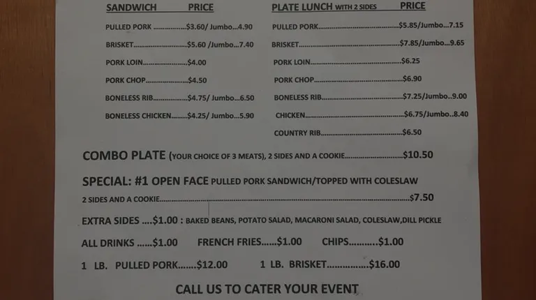 If you haven't tried this place you should! It's a food truck and has amazing BBQ! The plate lunch that I got comes with a pork BBQ sandwich and 2 sides. The total was $6.32 with tax! The food is delicious!