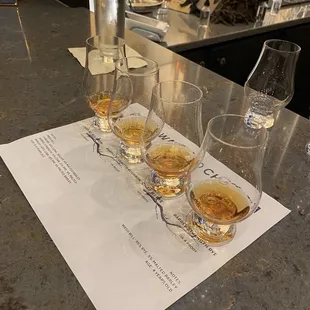 Growing brand with a retail location in downtown Louisville. We stopped by here tired of walking around town and went for a drink. After being exposed to char #3 Bourbon in multiple establishments, I decided to go lighter with only a toast barrel flight. It's pretty amazing, after experiencing multiple brands where you could pick up the variances in the processes. However this was my only toast barrel tasting, so I don't have a comparison. That being said, as the experts have said multiple times, the barrel truly impacts the flavor. The toast compared to a char, gives a much lighter body and caramel flavor profile. I'm partial to the French oak barrel finish and the rye. The French oak gives a lighter body and the rye has that nuttier finish that I appreciate. I appreciate the variety of different flights, I think this is one of the few on our trip with toast barrel, good novelty comparison.