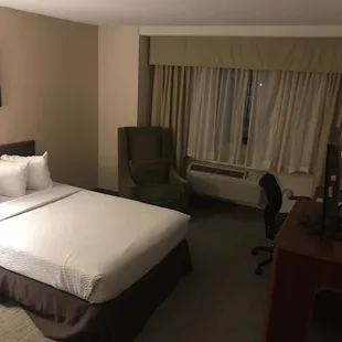 This hotel was larger than expected. Staff was nice and rooms were quiet. Our room overlooked the Kentucky river. This is an older property, rooms are outdated but had everything we needed. Very conveniently located/quick walk to downtown. They have free parking in the garage across the street.