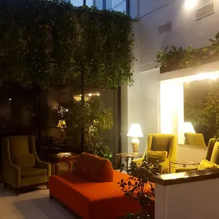 Lobby, nice wall with waterfall & skylight