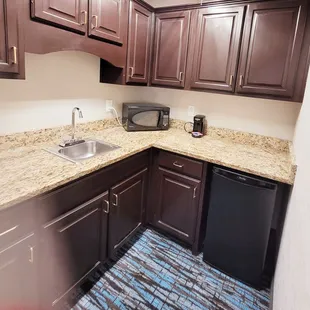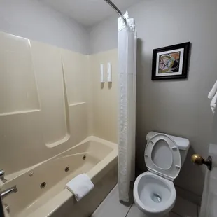 Staff were friendly, and hotel was clean. That being said, there were some aesthetic issues. The shower door would not stay closed, and kept rolling open. There were obvious spots where there were drapes and towel bars where the hotel didn't clean up and paint over. Sprinkler heads were missing their caps, and so there were three grungy holes in the ceiling. Worst thing was that we had to stop using our hot tub because it was leaking through the drywall in the suite below. Some simple things need attention, otherwise a nice hotel.