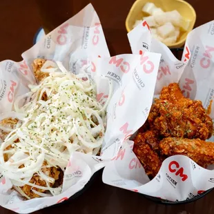 chicken wings and fried chicken, food