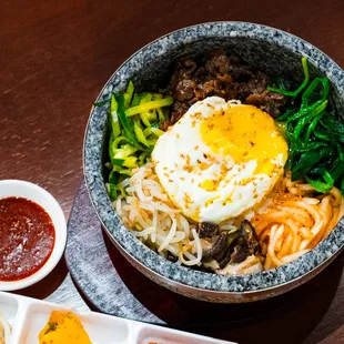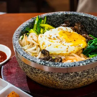 Lots of delicious and varied Korean food options. Lots of vegetable dishes. Friendly staff and great service.