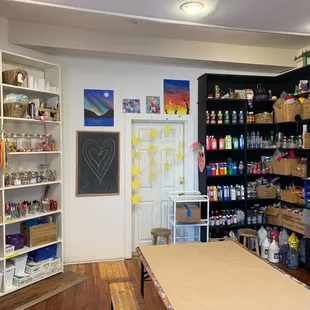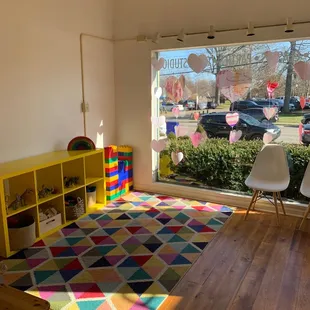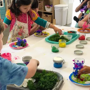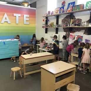 I brought the kids here today for a Valentine Slime Party. It was our first time here so we didn't know what to expect. Turns out, when you are attending an event,, it's best to ore-register online and show up on time. We didn't pre-register and we showed up late. Lol. Luckily, the owner was super sweet and understanding and a loud us to stay and let the kids create their slime. It was so cute and artsy inside. I was happy to see there Waac a play area with blocks and toys for the littles while there siblings weRe creating slime. Personally, I don't tthink it's a great idea to allow a fresh 2 year old to create slime so she played in the play area during the creation. Anyways, we created slime and it was fun. We even learned that there were adult classes, parents night out programs, schools our camps and classes specific for the littlest ones. I will definitely be checking some stuff out.
