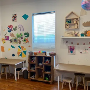 My first impression of this place was terrible. We walked in and instead of being greeted warmly in a CHILDRENS place, we were immediately greeted with that they couldn't support our 2 adult and 1 toddler party, keeping in mind this place is also a shop that sells toys. Their website clearly states they do drop ins and have a drop in table and that was what we came to do. The front staff started to list off what they couldn't support, because they had a party in the back, despite the drop in table LIKE THEIR WE SITE SAID AVAILABLE was open at anytime. When I said that's what I came for it was like oh, here's this stuff for 20$ have a good day, I'll keep checking on you and reminding you I'm busy, but that I want you to feel important while I entertain the people that paid for a party. I 100% felt like as brown people we came in and didn't want us. We were looked up and down and made to feel that this "drop in event" was not important. I've worked in customer service, and child care and have zero sympathy for people who can't manage these aspects.