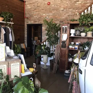 I found my plant haven in Etown! Came in after going to a pop-up a couple of doors down. We loved it, my kid and I found so many goodies!! From plants, home decor,books, clothing and more. We found a couple of planters, that fit our decor and personal style. The beauty behind the counter was amazing and knowledgeable. You can tell her love for the store and products was genuine. She even let us go upstairs to view and sit in their venue space they rent out. Eccentric and comfortable, but down to earth and all natural wood furniture. It was beautiful and the natural light from the windows made it a inviting. I also purchased a cup of coffee that they are now offering. They offered different cream options and sugars and flavoring. It was just want I need that morning. My kid found this neat spilt rock plant he wanted and I found some cookies and chocolates. I loved some of the clothes they had, just wasn't something I was interested in buying at the time. We definitely want to go back for Christmas time. We loved the atmosphere, my kid loved that the lady was willing to help him and listen to his requests. If you in the area take a minute to check them out!
