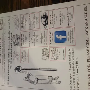 the menu for the meal