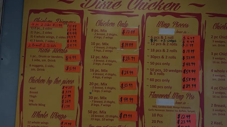 Occupying the spot of a former bakery, across from the Walgreen's at a corner of Dixie Highway and Crums Lane, near the intersection where it's a complete cluster%$^ with Dixie Highway taking one direction, 7th Street beginning and Crums Lane attempting to cross both, sits Dixie Chicken. I don't know if this one is associated with the one that exists at Oak Street nearer to downtown, but I suspect there's some connection.Dixie Chicken is strictly carry out. Call in your order or stop by, they usually have their mainstays (fried chicken, spicy or mild, ribs, fresh pulled pork and assorted sides, mac & cheese, greens, yams, etc.) available in a heating table behind glass. They'll also cook some chicken up fresh if you like. Compared to some of the other local fried chicken, Dixie's is really similar to Indi's. Dixie's chicken is crispy with a thick, salty batter but I don't think there's enough of a striking difference from Indi's to choose one over the other. It doesn't help Dixie's that their location is difficult to get in and out of unless you're familiar with the area, and they don't have a drive-thru. They seem to be doing decent business so I wouldn't be surprised if they stick around but considering there's an Indi's right up the road, I'd likely choose them first.That is to say, not to say that Dixie's isn't fine, it's just I'd likely not cross the road just to get to this particular chicken.