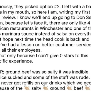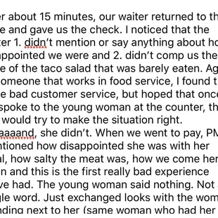 Yelp told me my review was too long, but I sat here airing my grievances for a long time so now I need someone to read it. Full review has been included as pictures.edit: of course they put the pictures in the wrong order lol it's whatever if you don't want to piece it all together here's the tea - place sucks, service sucks, staff is rude. go somewhere else.