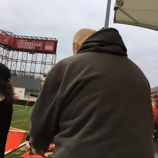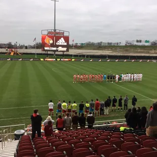It's the most premier soccer stadium of its kind. As an alumna of the University of Louisville and a sports fan, I can't speak highly enough of this facility. I am very glad to have been there for an opening-night double header. Basically, there is standard stadium seating around 1/2 of the field: one the length and one the width. The width side with seating is a student zone of sorts, right behind a goal, which is great, because students at the University of Louisville can go to soccer games for free with their student IDs. The other half of the perimeter is the berm. This is where I spent most of my time. Concessions, in terms of the availability, are a bit limited. However, most games will not be as packed as opening night - that's how opening nights go. The lines and time spent will surely improve as time goes on and routines are set. The main concessions are in the corner at the top of the stadium, but there is a separate place to purchase some food and (adult) beverages on the grassy area directly across the field from the other concessions. It's a beautiful complex with a great screen/scoreboard. It's easily accessible as parking is close at Papa John's Cardinal Stadium and other close-by lots. It's family-friendly. This was my kind of place to watch a game. If you're into college athletics, check it out. You'll be glad you did.