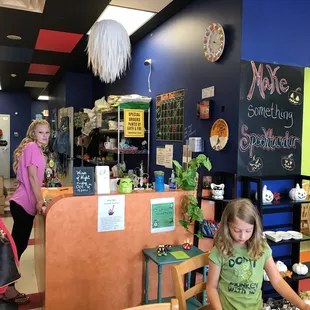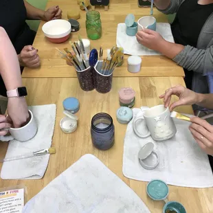 What a fun spot to be artistic! We went with a group of 15 and painted pottery. This was our afternoon of bonding with our office. They had a room that was open for us all to be together. Although, it was a tight squeeze. It would have been nice to have a little more space to move. They had many options of pottery to paint, stencils and stamps for lettering, and fabulous color options! We each picked something different and enjoyed painting and hanging out. They do have snacks and drinks available and a wine night on select dates. The place was clean and tidy and the staff was kind and helpful. This would be fun for adults and kids! We left our pottery to be sealed and we pick it up in a week or two. It was fun and low key.