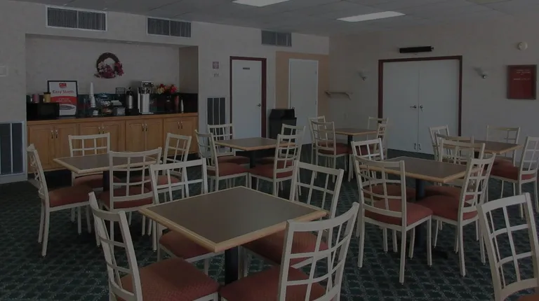 I'm sorry to have to give this Choice Hotel a one-star, but I must.The room had old, dirty and torn carpet that had multiple stains on it.The bottom of the tub was dirty with black grim.The chair was less comfortable than one in a doctor's waiting room.The breakfast bar consisted of cold coffee, white bread to toast, cereal and packaged danish.The air conditioning unit was very small and did not keep the room cool, it was hot and humid. The AC unit was set at 66 degrees and the controls did not work.No microwave/fridge in the room.For $49.99 a night, really not even close to acceptable.Methinks not.