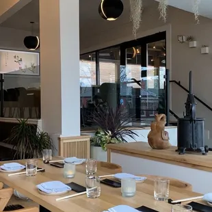 I've been here twice now. Once solo and once work a group of 5. Since I won't be returning, it's time for a review.My first visit, I sat at the bar and had great service from the bartender and my server. The food was tasty for the most part (frog leg skewers were the best, cheesecake was weak) and my cocktail was tasty. It was a bit pricey, but overall maybe 3.5-4*.However, my second visit was very different. With a group, we had to wait until everyone was present to be seated, even though the table was just sitting empty. Fine. We waited outside because there was no space inside to wait. Once everyone arrived, we were seated. The server quickly rattled off menu things, including what they were out of and the specials. We then looked over the menu, and had to flag our server down to get questions answered. Eventually, three members of the party ordered drinks. One of them had some interesting foam on top, but the server didn't know what it was and didn't help us in answering the question by asking someone else.We ordered a "side" dish and a "main" dish each. One person was served. Then, several minutes later, a few more "main" dishes were brought out. A few more minutes later, some "sides" brought out. For 4 of our party. The last person didn't get her food until at least 15-20 minutes after the rest of us and we had to ask about it. Even then, they brought the "main" a few minutes before the "side". I should add, the "side" was a bowl of rice! Needless to say, service was not impressive this time. I was quite annoyed, as was the rest of my party. I got the potato salad and the mushroom yakisoba bowl. The potato salad was.... ok. One of the better dishes of the night, but very rich with mayo and a slightly fake bacon flavor. Also, not the easiest to eat with chopsticks (we were not offered forks, although we eventually asked for two of them). The yakisoba was also OK. A bit salty for me, but decent. Not worth the price for either though. My cocktail was also just OK this time around.At the end of our meal, it was clear that we were not welcomed to linger and chat either.I should say, the interior is very very well decorated. The mix of wood, plants, and glass comes together beautifully. However, the acoustics are horrible. We could hardly hear and struggled to carry on a conversation.Second visit was 2*.Overall, I'll give them 3*, but I won't be recommending or returning.
