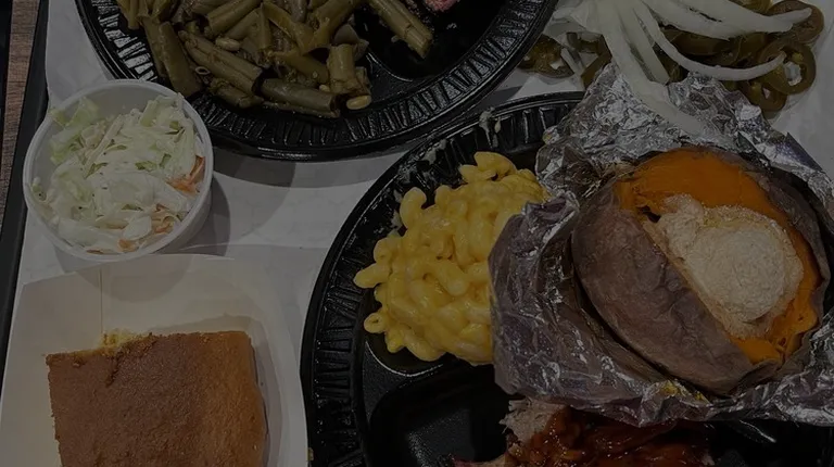 Got the 2 meat plate with sides and cornbread. Love the pulled pork and brisket and bbq sauce. Green beans delicious also. So disappointed in the Mac and cheese. Kraft box for kids would have been better. Gotta mention the cornbread. Tasted like a piece of box cake mix. Not like cornbread. At all. Add some vanilla icing and it would have been dessert. Lunch for 3 with banana pudding was $76. Little pricy