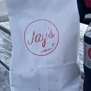 a paper bag with the word jay's on it