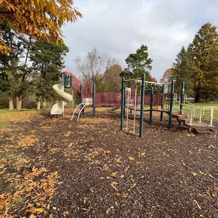 We stopped by here on the way to the zoo this afternoon. My family and I had a good time with all the swings and slides that they offer. A cool unique thing this park has is giant chairs in front of a large building. It is a nice photo opp that my family took advantage of. I wish we could have gotten to experience the walking path that it seems to have. I will be back soon to try it again