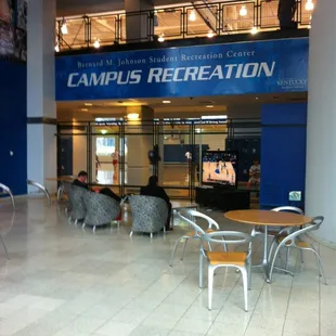 Having gone to a liberal arts college and the only gym I've ever been a member at was the YMCA, I felt really out of the loop on what modern gyms look like on my first visit here. This place is awesome, but then again it's the home of a university obsessed with sports - what did I expect? Definitely not weight machines with QR codes, a rock climbing wall, treadmills that power the gym's electricity and a water fountain system designed to conserve water. Health doesn't just mean working out here, it's clear that this rec center is designed to inspire a larger sense of what health is. Ahh, how I miss college.Even though UK is huge and this rec center is huge, in the dozen or so times I've gone as a guest ($5 for a guest pass entry as long as your with someone with a membership) there's never been a shortage of equipment. Treadmills and other cardio machines I use but don't know what to call stretch as far as the eye can see. My only complaint is how can you have a badminton and racquetball courts indoors but no indoor tennis court? C'mon, UK step it up (if I cared about basketball I'd insert another line here, good thing I don't :) ).