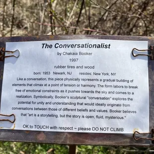 Free and open to the public. There's no one there to assist or ask questions. You park and explore on your own. It was nice stroll through the park to see the sculptures. Some were nice, some interesting, some I didn't quite get. Some you can touch and climb on, some you cannot...so make sure you read the signs. My kids had a good time.