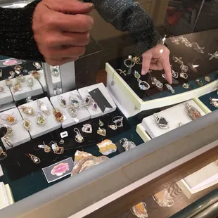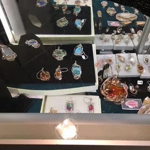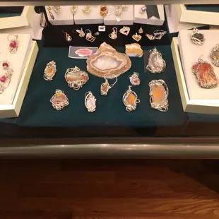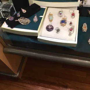 I visited here for the first time today during our event Dine around Etown. I had never been in this little shop in our town square and she did not disappoint. The owner of the shop was so sweet and just wanted to talk. I really love when local stores are homey feeling so this was something I would definitely go back for. She makes jewelry by hand and each and every piece is unique so you will never see another like it out there. She uses stones native to KY, and other precious stones that she finds. The intricate detail on every piece is so beautiful I fell in love with so much there. While a lot of the pieces are out of my price range; for being hand made they are definitely worth it because everything is real. This is definitely not j st fashion jewelry these are story pieces. She was willing to show me a piece she was currently working on and we talked about how long it takes for her to make certain pieces. She also let me know that she does custom jewelry, which I think is really neat and a great place to get a special gift for that special someone, or your mom, or whoever. So, if you are downtown in Elizabethtown go check her little shop out. Even if you just want to sit and talk jewelry.