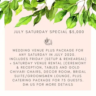 Their all inclusive wedding package saved my life !!!!! Perfect place to have a wedding. The event managers are very knowledgeable and go above and beyond. They helped me facilitate details I would have never thought of.