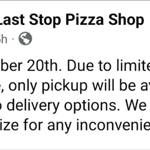 Jason, the owner, is an absolute godsend. I was bicycling along the ACATAT and had planned to cross the bridge down the road to get to a campground before sunset after grabbing a quick bite at Last Stop. He informed me the bridge is out and it's quite a trek around it, instead offering me to stay outside the pizza spot. He even gave me a carrot cake. His staff was all super generous from the moment I walked in, filling my Camelbak and just being genuinely good people. Now, aside from all that, how was the food? Actually great! I live in Chicago and my roommate runs a pizza based Instagram so I know a thing or two about pies. This was the real deal. Proper flatbread Italian style crust and fresh ingredients. I got pepperoni and mushroom(one of my go-to combos) and it did not disappoint. I saw another reviewer complain that the medium was small. That's true. I had a medium and was easily able to eat half myself, but still. I'm a cyclist and only ate half. I've eaten an entire large Lou's thin back in Chicago by myself. I guess you should just figure out how hungry you are and plan for it. I'll be back when the bridge is reinstalled and my legs have more muscle on them. Party on, Bryantsville!