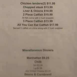 a menu on the wall