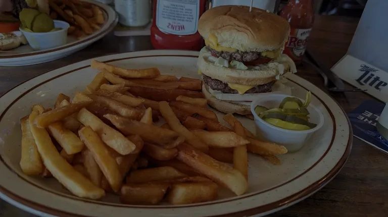 An okay lil' corner place w/good burgers. I had heard this place had great burgers and i was not disappointed when i had one. other than that, this place did not have a whole lot else.it had some old neighborhood corner bar charm but also had , for lack of a better word, unnecessary clutter.it was not easily handicapped accessible but being an older building & on a hill, you have to expect that.