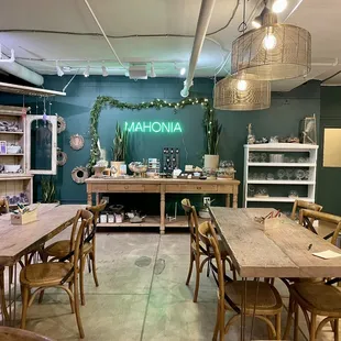 Mahonia is my favorite place on earth. It feels like home. It smells amazing. The atmosphere is warm. There are beautiful lovely things everywhere & it's just a breath of fresh air. I have bought numerous plants from here (years ago) & most of them are still thriving. It does seem like they replaced their fresh flower bar for a dry flower bar, which is super cool. But I wish they had both going.