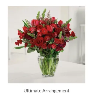 Shouldn't even rate one star...my bf ordered the ultimate arrangement to be sent to my work for Valentines and what I received was nothing like the picture he sent me. I understand today is a busy day but come on he just spent a bundle of money with you guys. First pic is what I received (mind you I had to arrange them to look decent) and second pic is what he ordered. Like I was told by owner someone else is very happy at the moment and I am not, with the florist that is.