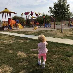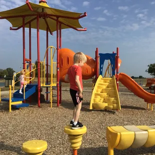 This is a fairly elaborate playground. Because it is 7 years old, some things are not working. Because there is so much to do, it is still one of the best places to visit. The spinning cup and standing spinner do appear to need repairs. And a large blue board has been installed by the city to keep kids out of the sway boat. But if you have a two year old, she will find a way to squeeze herself onto it. This is amazing playground equipment and I hope the city will eventually repair or replace these individual items. Additionally several parts of the tan tunnel slides really need a good pressure wash.The splash pad right next to the playground is only two years old and seems to be operating at peak efficiency.