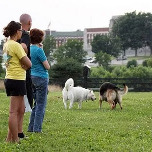 Best dog park in Lexington. Nice, big trees provide shade for if it's too hot. Plenty of room for dogs to safely run around (it's a huge dog park, so you may have to chase your dog around for a while if they don't want to go home yet). The area is very well maintained. There are technically separate sections for big dogs/little dogs, however it seems people prefer the big dog side. If you have a small dog that's not good around big dogs, you'll feel safe on the small dog side. The only downside to the small dog section is that there aren't the big trees for shade.It's Great place to hang out and talk with other dog owners. Poop bags are available at the entrance, but it's good to bring some extra in case they run out. My only complaint is that the water station is on the far end of the dog park. Like I said, it's a huge park, so it's a good walk to get to the water for your pup. But I guess if your dog is getting exercise, you might as well get some too?