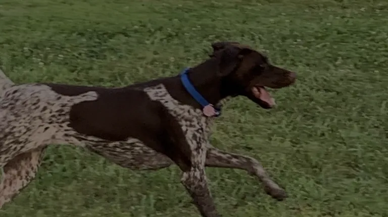 Sadie, my blind dog. I keep her on a leash here since Henry, her guide dog is running wild here.
