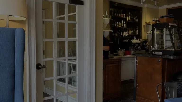 the entrance to the coffee shop