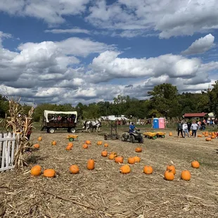 This place was dog and family friendly! They had wine tastings and pulled pork food truck on the Saturday that we went with amazing tacos, loaded fries, and sandwiches! The pre-picked selection of pumpkins and gourds was impressive but the pick your own pumpkin patch seemed scarce. The corn maze was fun for adults, and there was a smaller children's corn maze option too. The carriage ride had a short line, but also only went around the farm, probably a 10 minute ride, great for children. I didn't venture over to the petting zoo, but there were multiple animals to pet and pony's to ride. This is a nice place to adventure to in the NKY area for a Saturday afternoon.