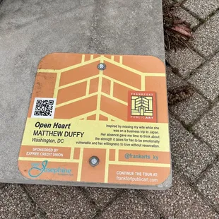 Open Heart Sculpture located In downtown Frankfort, Kentucky in the cities most popular 2-3 block of shops, eateries and other public art pieces. This piece is one of many small to medium sized sidewalk sculptures within easy walking distance of historic downtown Frankfort. This metal sculpture featuring a silver heart with red interior dare I say right in the heart of downtown Frankfort. This makes for a very fun photo op that I'm sure many families, lovers and friends have posed in front of. Overall a fun and great public art piece that is part of a very coolTo explore and discover sidewalk sculpture initiative that is all around the area.