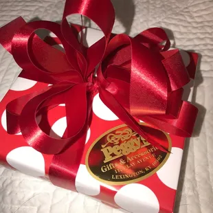Over the weekend I visited the local gift shop on Clay avenue, Peggys! You feel joy right when you walk in there have Christmas decorations all around and sweet staff to greet you! I was in search of getting a hand painted Christmas ornament for my nephews first Christmas! Sadly I didn't take a picture of it before it was wrapped but I've included a photo of their amazing wrapping skills. They wrap everything free of charge and I was in and out very quickly! Shop small this holiday season!!