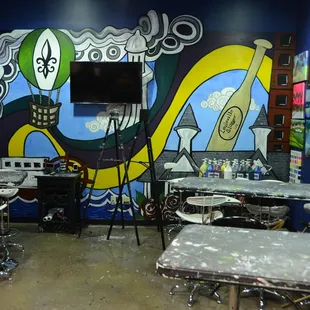 Fun girls night out! Or girls and guys! Everyone there looked like they had a wonderful time. It was great to be given some guided instruction and then to continue on with your creative self to end up with your very own masterpiece to hang on a wall in your abode! :) I have been here twice now. Once with two of my girlfriends doing the Paint Your Own Fleur-de-lis and once I rented the party room and invited some friends. Both times were an absolute blast! They sell wine and beer and the staff is very friendly and upbeat. You must be 21 years old and you can't bring in your own alcohol - against the ABC rules! The beer and wine are priced like in a restaurant so no big surprises. The paint and canvas and brushes are supplied with the class fee. Will definitely do this again!