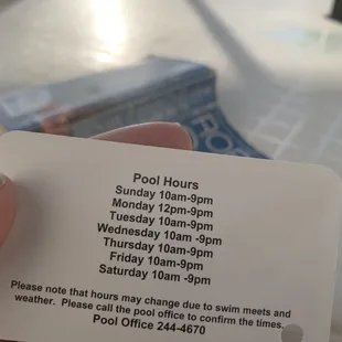 Open till 9. First wave clears out at five second wave clears out at eight. Diving well left, family pool right.