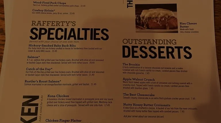 I walked across the parking lot from the Hilton Cincinnati North to find Rafferty's. I was able to get the last seat at the bar at the time I went. It had a great vibe---many TV's and sports on all (mostly tennis due to the timing). They had some great craft beers on draught. I ordered the Rhinegeist Truth which is my "go to" beer when visiting the area. For the main course, I ordered the "catch of the day" which was Mahi Mahi charcoal grilled and blackened with cajun seasoning. It was cooked perfectly. The garlic mashed potatoes were excellent. And finally--- probably the best reason to give them a 5 star was the bartender Shelly who was probably the nicest, fastest and hardest working person in the restaurant. She says she's been there nearly 30 years and loves her job. I can tell from her work ethic and attitude. I wish there were more people like her in the food service industry----- or even any industry.