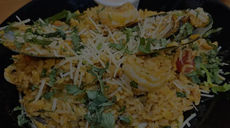 Arroz Chaufa de Mariscos. Fried Rice Seafood