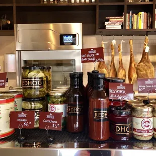Besides the butcher there is also a nice little rustic style restaurant at Red Hog. We made a reservation for noon and requested a low top table - there are just a couple of them. Otherwise, all high tops with backless stools. I'm glad I did my research before taking a relative who would not have been able to sit at the high top table. The food was very good and service delightful. It was crowded so the noise level was a bit high. We placed our orders and were served promptly with a smile. There is also outside eating. Overall I would go again but after the lunch crowd.