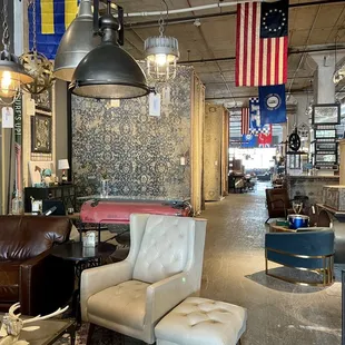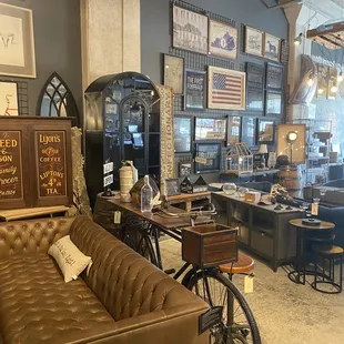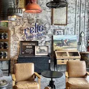 We had come down to the distillery district to eat Goodfellows pizza and stumbled on the Relic Lexington by chance and am sorry I had not found it sooner. I love the style of this store with a mix of antiques and new items. The store contained many Lexington pictures such as maps of the city and horse pictures and signs. The style of the store was a hip rustic vibe and many new and beautiful rugs and furnishings. There was also bar ware and bourbon barrel heads and bourbon stave items. The place contained many cool tables, bars, shelving units and military pictures and tables. The owner Chad Tussey was helpful and gave me a card with the website. The website was well laid out with the items divided into categories: furniture, accessories, bourbon barrels, cover your walls, oriental rugs, lighting, stuff for your bar, Kentucky made soaps, candles, and food, architectural salvage, hats, shirts, socks, etc., grooming supplies, new relic finds, and sale items. I will be back and really enjoyed my visit.
