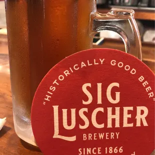 Stopped in for a quick beer. Nice quaint place, indoor and outdoor seating. I had the porter, the squeeze a Pilsner, which they've been making since 1866. Both were solid beers.Chris was very friendly and gave us a history of the brewery. No grub.